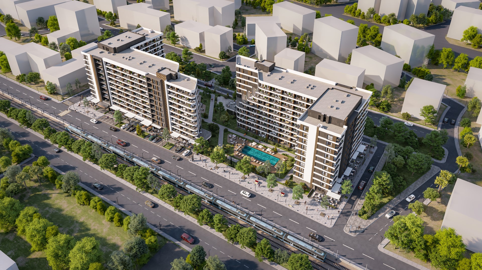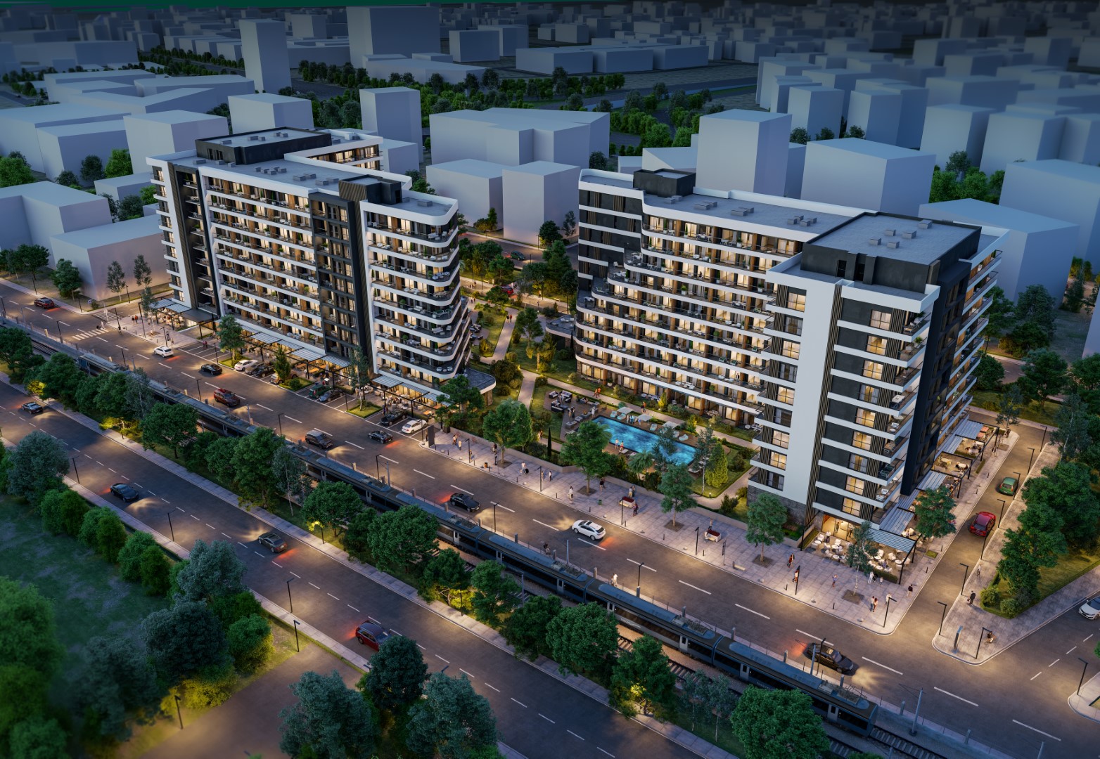 8400m2 arsa üzerinde toplamda 450 adet daire ve 26 adet ticari üniteye yer vericek olan projemiz 38.421 m2 inşaat alanına sahiptir. 1+1 daireler brüt 60 m2 net 43 m2 ve 2+1 daireler brüt 80m2 net 57m2 dir. Projede 5.000 m2 kapalı otopark alanı 5.000 m2 peyzaj alanı ve 2 adet yüzme havuzu bulunmaktadır.